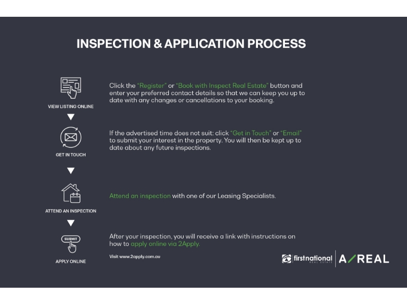 **Scheduling your property inspection is now a breeze! Simply click on the "Book an Inspection" or "Request a Time" button to secure your appointment. You'll instantly receive a confirmation and be kept up-to-date with any alterations or cancellations concerning your scheduled visit. Please be aware, inspections may be subject to cancellation if no bookings are registered. Make your booking today and take the first step in finding your ideal home** Experience a higher standard of luxurious living with this feature-packed townhouse.On a block of only four and boasting state-of-the-art security, upmarket finishes and a low-maintenance design, this carefully crafted home represents a significant boost in lifestyle quality within a short stroll of Reservoir Village shops, Ruthven and Reservoir train stations, local parks, the Metropolitan Ring Road and schools.With a chic open-plan living domain featuring a sleek gourmet kitchen with stone benchtops, stainless steel appliances, dishwasher and direct access to the balcony.Boasting two generous sized bedrooms with BIR's that are serviced by a luxurious central bathroom with a bathtub.Further features include; heating and cooling, polished floor boards, downlights, single car remote garage, study nook, spacious laundry and so much more.Don't delay, inspect today! DISCLAIMERS *It is a requirement to inspect the property prior to applying. **Inspection times and property availability are subject to change or cancellation without notice. We highly recommend registering for an inspection should you wish to attend to avoid disappointment for any changes or cancellations. ***Whilst AReal Property & First National South Morang has taken care in the preparation of the photos and description of the property, interested person(s) are advised to make their own enquiries and satisfy themselves in all respects of the property they wish to lease. ****Note: Some images used have been virtually staged.