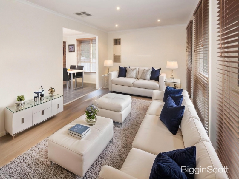 Positioned in a peaceful and highly sought-after pocket of Knoxfield, this immaculately presented residence offers the perfect blend of comfort, style, and space-making it an ideal choice for families or professionals seeking a premium lifestyle. Step inside and be welcomed by a light-filled and thoughtfully designed interior that features multiple spacious living zones. The impressive formal lounge sets the tone for relaxed living, while the separate dining area is ideal for entertaining. A well positioned kitchen takes center stage, equipped with quality stainless steel appliances, a dishwasher, and generous storage space-perfect for home cooks and busy households alike. The home comprises four bedrooms, all with built-in robes, including a master with a ensuite. The main family bathroom is centrally located and finished with modern fixtures and a fresh, contemporary design. Quality plush carpets add warmth and luxury underfoot, while evaporative cooling and ducted heating ensure year-round comfort. Outside, you'll discover an entertainer's dream. A large, covered timber deck overlooks a sparkling solar-heated in-ground pool and relaxing spa-ideal for summer gatherings or unwinding after a long day. Low-maintenance, manicured gardens and extensive paving offer a resort-style feel, and the rare oversized garage with excellent height clearance is perfect for those needing extra storage or workspace. With its high-end finishes, exceptional presentation, and tranquil setting, this property delivers a rental experience that is second to none.