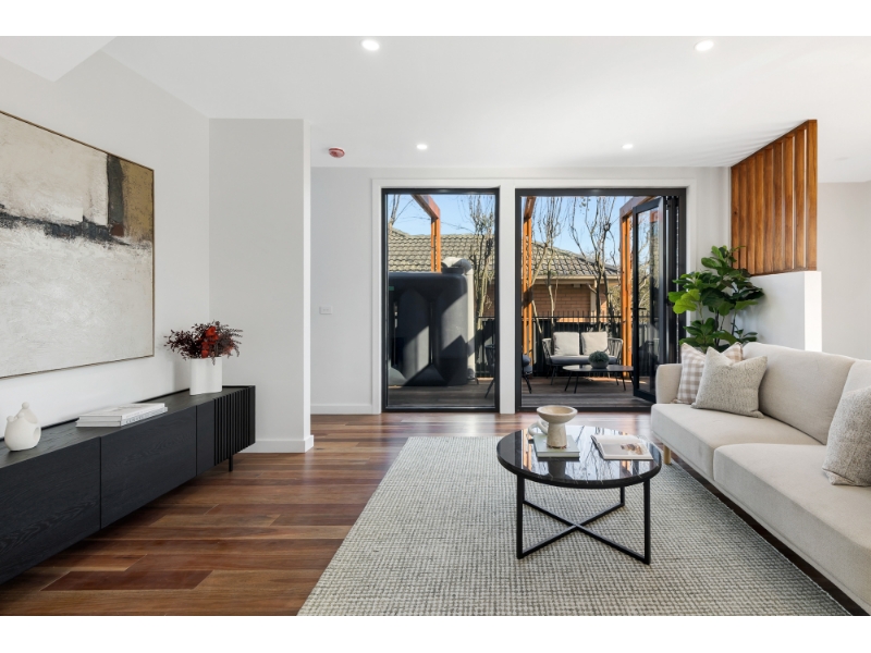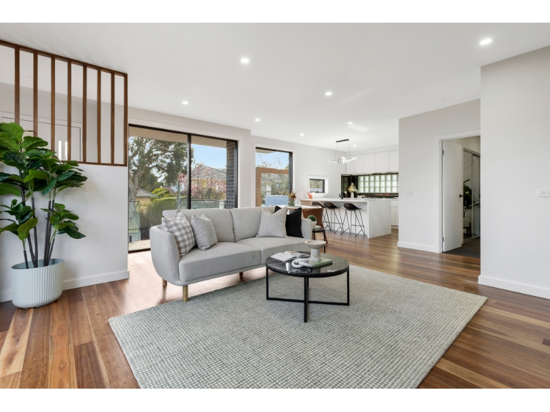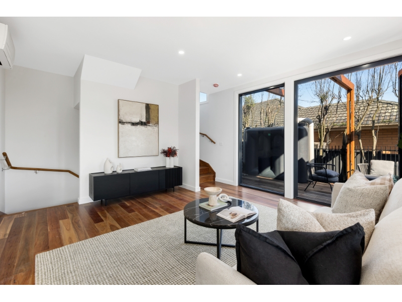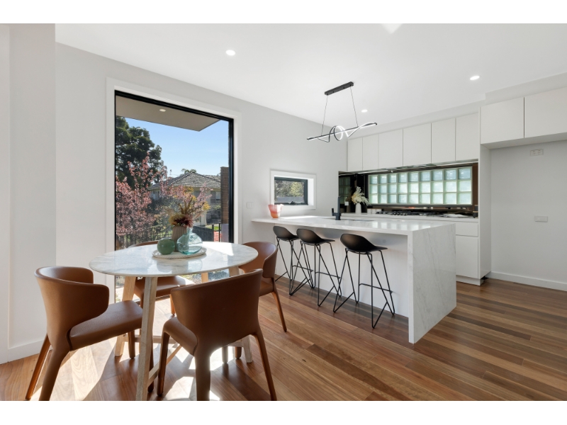 Architecturally designed with elegance, this prestigious, 3 level, family sized townhome showcases superior finishes and quality craftsmanship. Tailored for first-class living and entertaining, the cleverly designed floor plans maximise light and space Featuring an oversized living and dining area served by a designer kitchen (boasting premium appliances and stone benches), reverse cycle heating and cooling, basement car space and excellent storage options. This abode features luxe bathrooms and ensuites including stone-topped vanities and walk-in rain showers, premium carpets, private garden courtyards and a decking, providing an area for relaxed outdoor dining and entertaining. In a tightly-held location zoned to Doncaster Gardens Primary School* and East Doncaster Secondary College*, a short walk to bus services and Jackson Court Shopping Centre, and within close proximity to Tunstall Square Shopping Centre, the Eastern Freeway, local parks and trails, Aquarena Aquatic and Leisure Centre, Westfield Doncaster and The Pines Shopping Centre.
