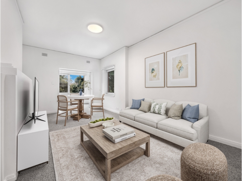 Step inside this beautifully renovated two-bedroom apartment, perfectly elevated from the street yet offering rare level access. Flooded with natural light and double-glazed European windows, this home creates a peaceful, private retreat while still placing you moments from the heart of Rushcutters Bay, Edgecliff station and surrounding hubs. Designed for both comfort and style, every detail has been thoughtfully considered. - Designer kitchen with stone benchtops and premium appliances - Two spacious bedrooms with built-in wardrobes - Sunroom offering a versatile dining room, play room or work-from-home space - Double-glazed European windows creating a quiet, light-filled haven - Level access from the street with elevated privacy - Elegant bathroom featuring a bathtub and separate walk in shower and modern fittings - Internal laundry with washer & dryer combo included - Secure boutique building in a highly sought-after pocket - Just 600m to Edgecliff Station and Ascham School - Short stroll to Rushcutters Bay Park, Cruising Yacht Club, cafes, and bayside walks Disclaimer: Main & Manor Property Group has no reason to doubt the accuracy of the property information provided. We request that at all times you inspect the property and make & rely upon your own enquiries. Virtual furniture has been used in this marketing.