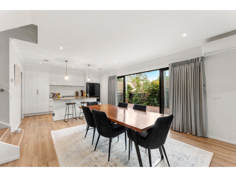 Set is this quiet tree lined pocket of Croydon North just moments from all the amenities that surround this well serviced location is this beautifully presented 3 bedroom home. Set at the front of the block with direct access the home comprises of: Formal entrance servicing the downstairs master bedroom with walk in robe and ensuite, generous open plan kitchen/family/dining room which overlooks a large deck and low maintenance courtyard. Kitchen complete with stone island bench, gas cooking, dishwasher, pantry cupboard and plenty of additional cupboards. Upstairs opens up onto a large second living room, 2 large further bedrooms with built in robes, main central bathroom with separate shower and bath with plenty of storage. Other features include: - Double remote garage with rear access to the courtyard - Ducted heating - Multiple split system air-conditioners - Separate laundry - Downstairs powder room. All this and more close to a host of premier schools, moments from the Croydon North shops and easy access to Croydon Central and Train Station, Chirnside Park Shopping Centre and a short drive to Ringwood’s Eastland and Eastlink.